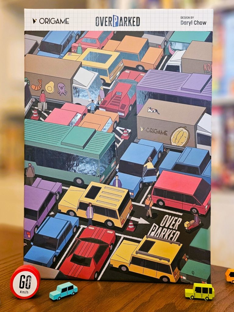 Overparked is one of the latest titles from Singaporean publisher Origame, by designer Daryl Chow. The aim of the game is to park incoming cars, trucks and buses in your parking lot, while working towards shared objectives and making chains of the same kind of vehicle.