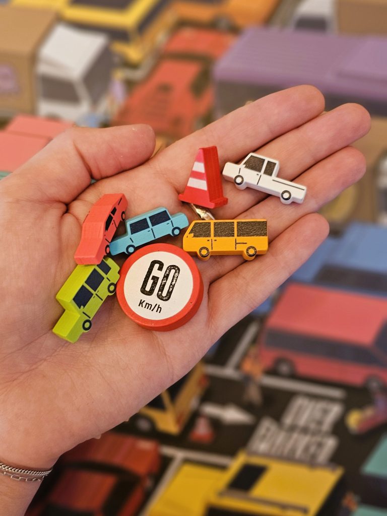 If you know us, you know we’re suckers for some nice pieces – and this game definitely delivers on that. The first player token, traffic cones and objective markers are thick wooden pieces, which add a great 3D feel.